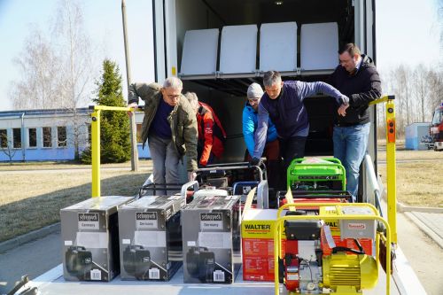 Tygodniowa zbiórka, 12 godzin pakowania, ponad 1000 km w trasie - dary z Kwerfurtu dotarły do Giżycka i po krótkim przystanku ruszą do Dubna. Delegacja z Kwerfurtu, na czele z burmistrzem Andreasem Nette, w 40 tonowym tirze przywiozła m.in. 16 agregatów prądotwórczych, żywność długoterminową, jedzenie dla dzieci, śpiwory, środki higieniczne. Wszystko to w krótkim czasie udało się uzbierać dzięki hojności mieszkańców naszego miasta partnerskiego Kwerfurtu.