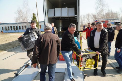 Tamtejsza straż pożarna przekazała również jeden ze swoich wozów strażackich i hełmy. Sprawny rozładunek transportu umożliwiło zaangażowanie niezastąpionych wolontariuszy ze Związku Ukraińców w Polsce Zup Koło W Giżycku Gości z Niemiec przywitali Zastępca Burmistrza Giżycka Cezary Piórkowski, Przewodnicząca Rady Powiatu Monika Łępicka-Gij, Przewodniczący Rady Miejskiej w Giżycku dr Robert Kempa. Transport do Dubna zaplanowano na poniedziałek, 21 marca.